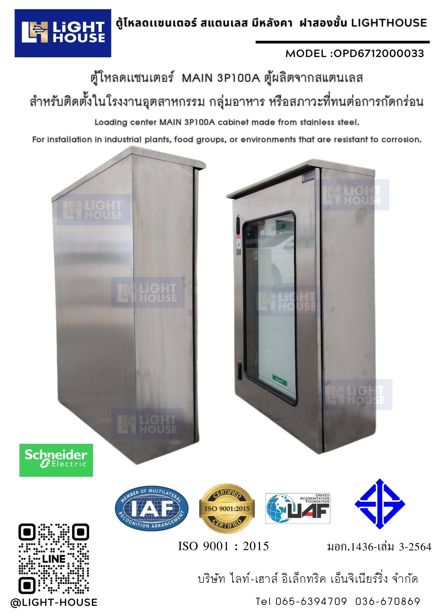 ตู้โหลดเซนเตอร์ สแตนเลส มีหลังคา ฝาสองชั้น LIGHTHOUSE (LOADCENTER STAINLESS STEEL PANEL BOARD WALLMOUNT)