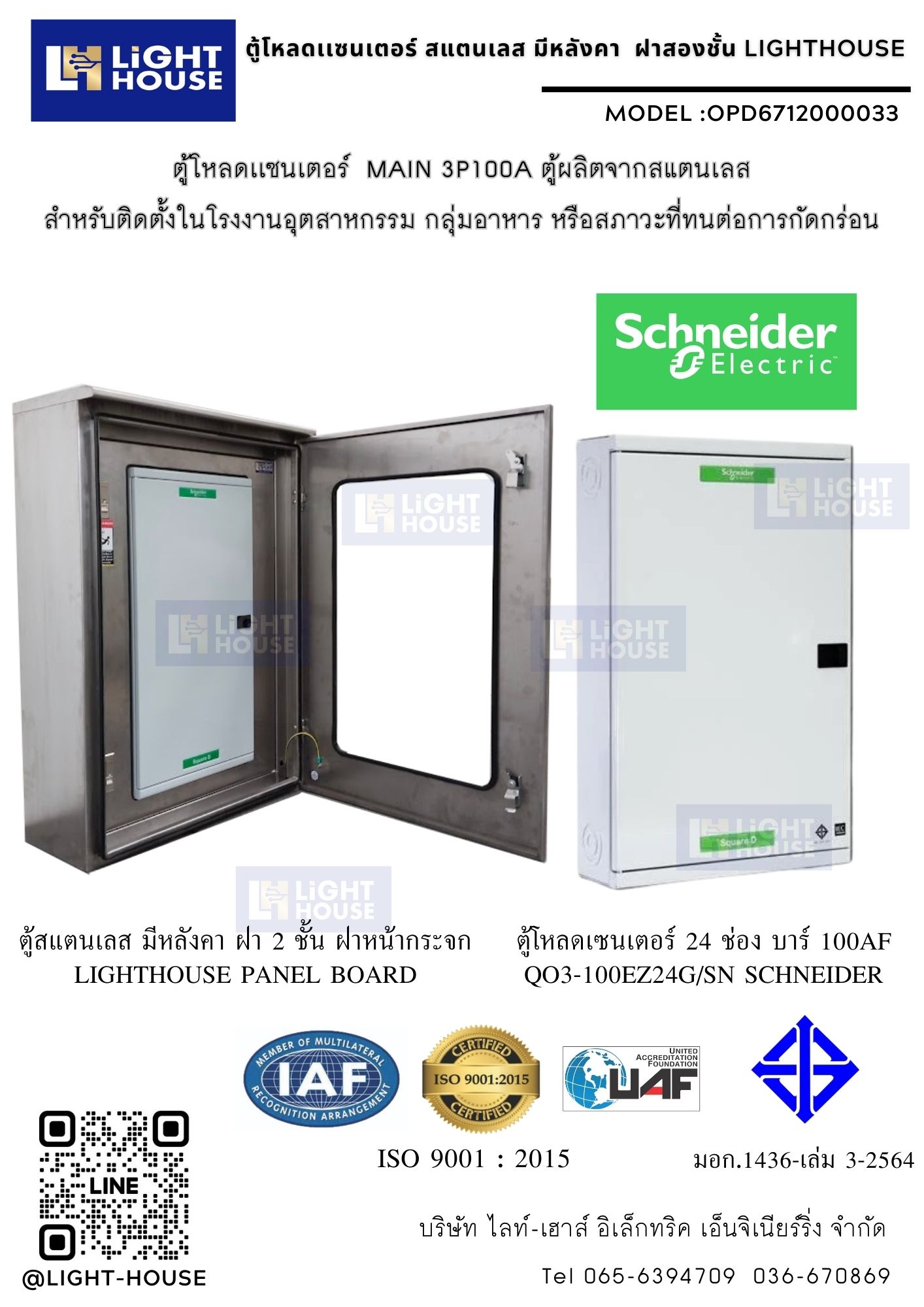 พร้อมตู้โหลดเซนเตอร์ ชไนเดอร์ 24 ช่อง 3 เฟส