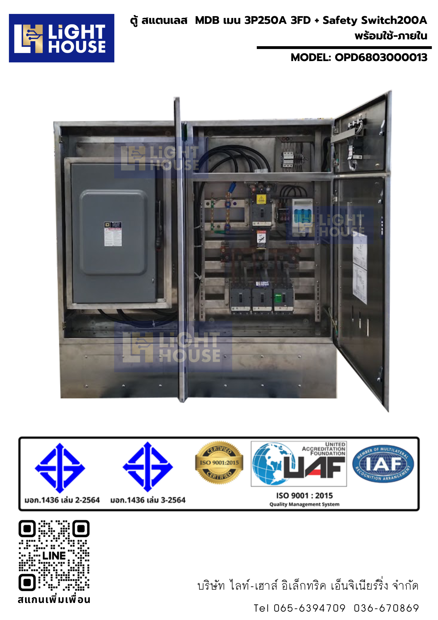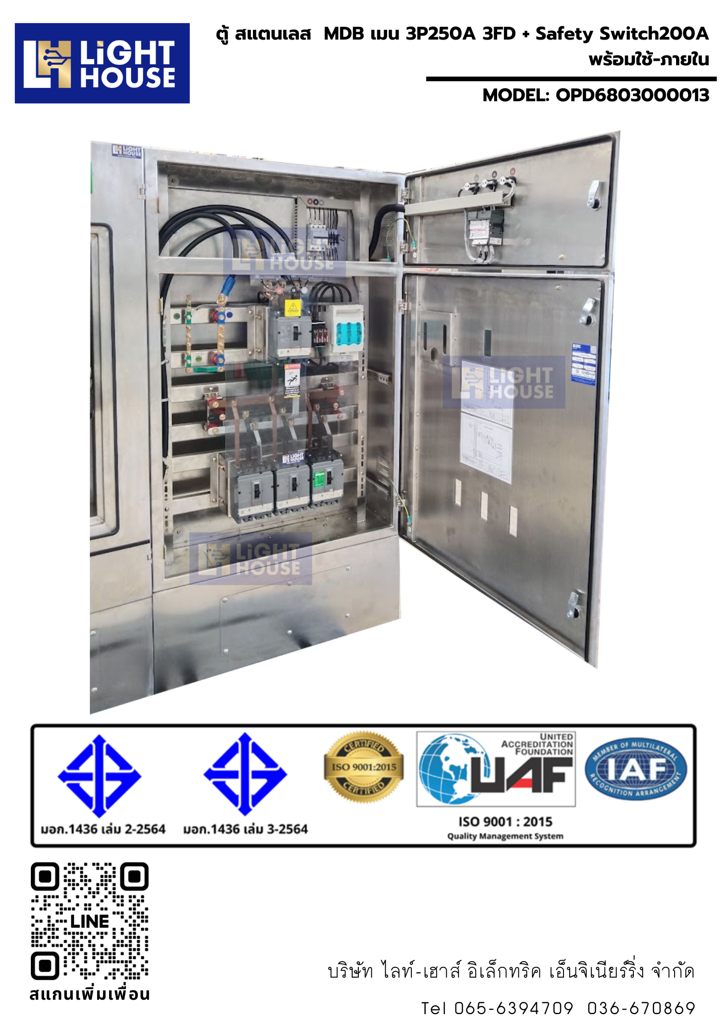 ตู้ สแตนเลส MDB เมน 3P250A 3FD + Safety Switch200A พร้อมใช้-ภายใน