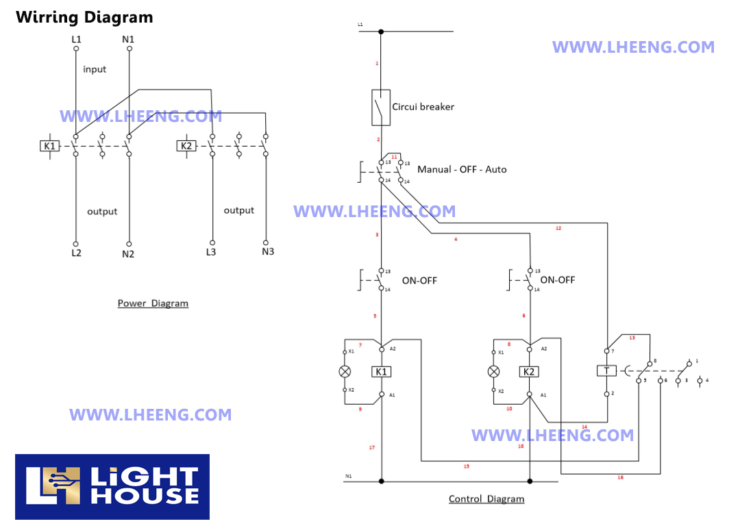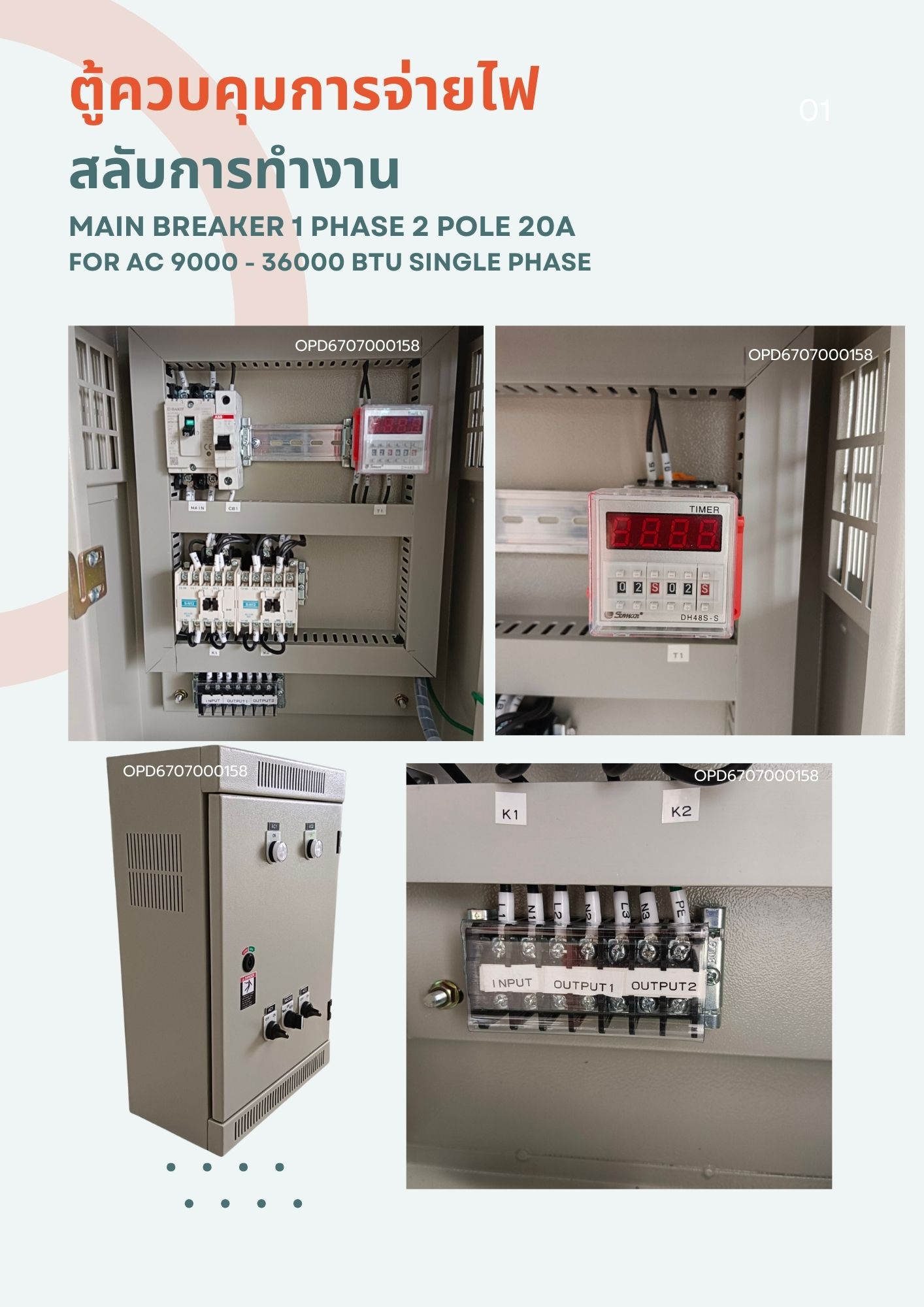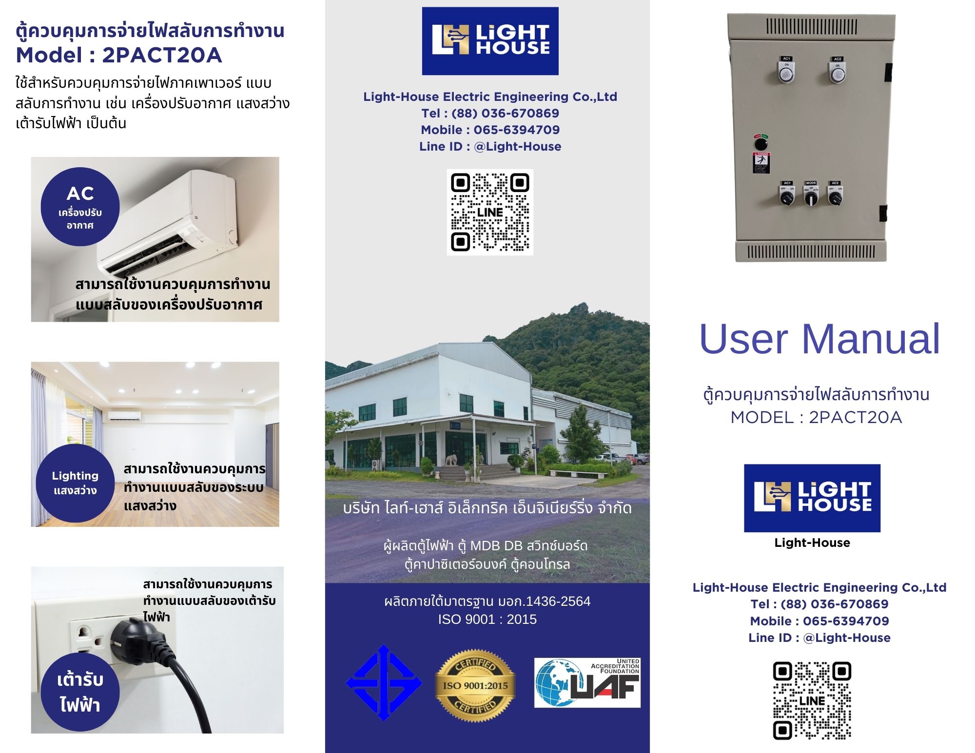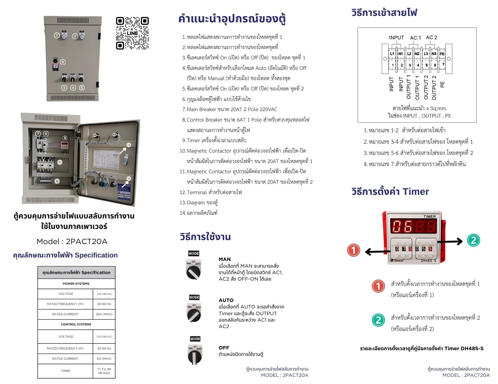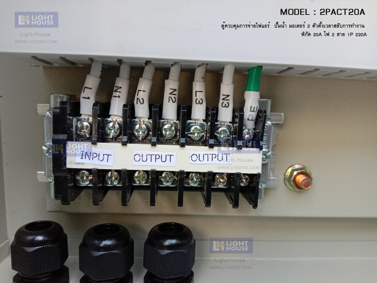 ตู้ควบคุมการจ่ายไฟแอร์ ปั๊มน้ำ มอเตอร์ 2 ตัวตั้งเวลาสลับกันทำงาน 24 ชั่วโมง พิกัด 20A ไฟ 2 สาย 1P 220A LIGHTHOUSE