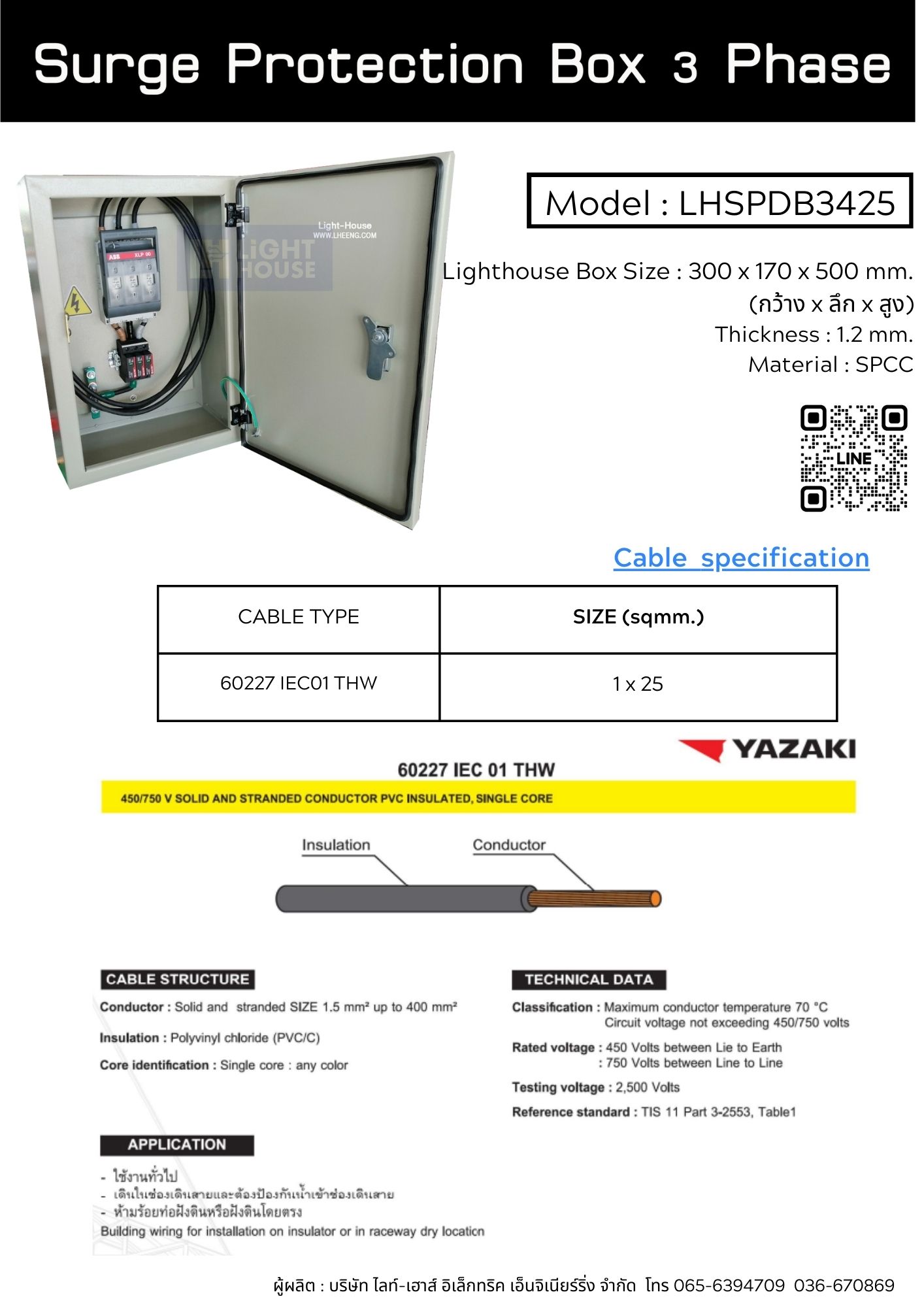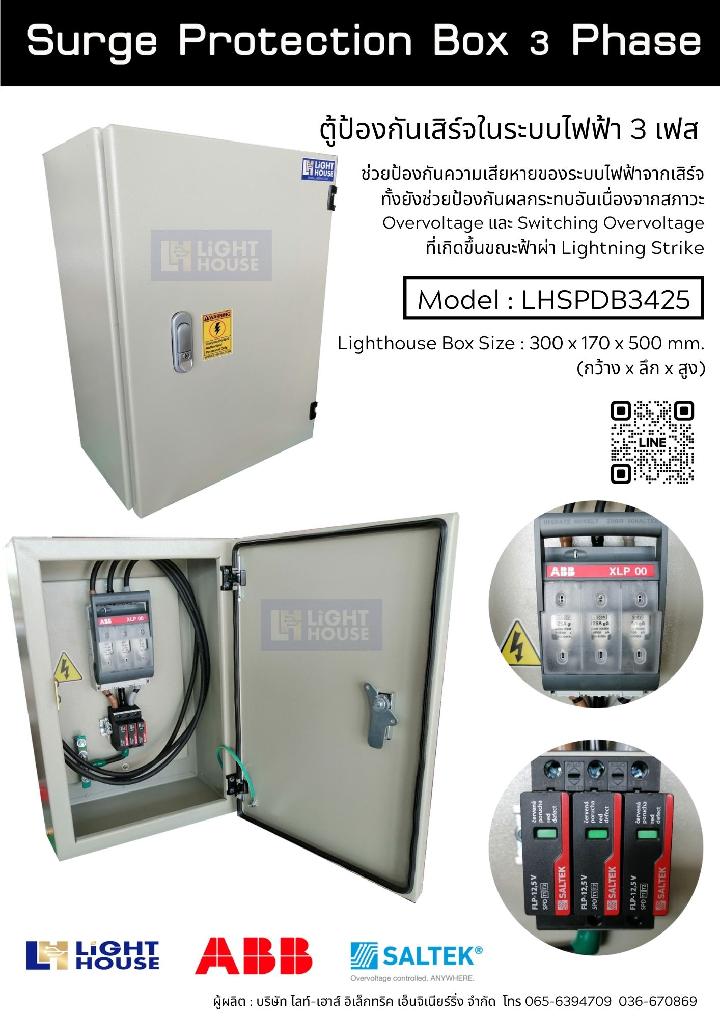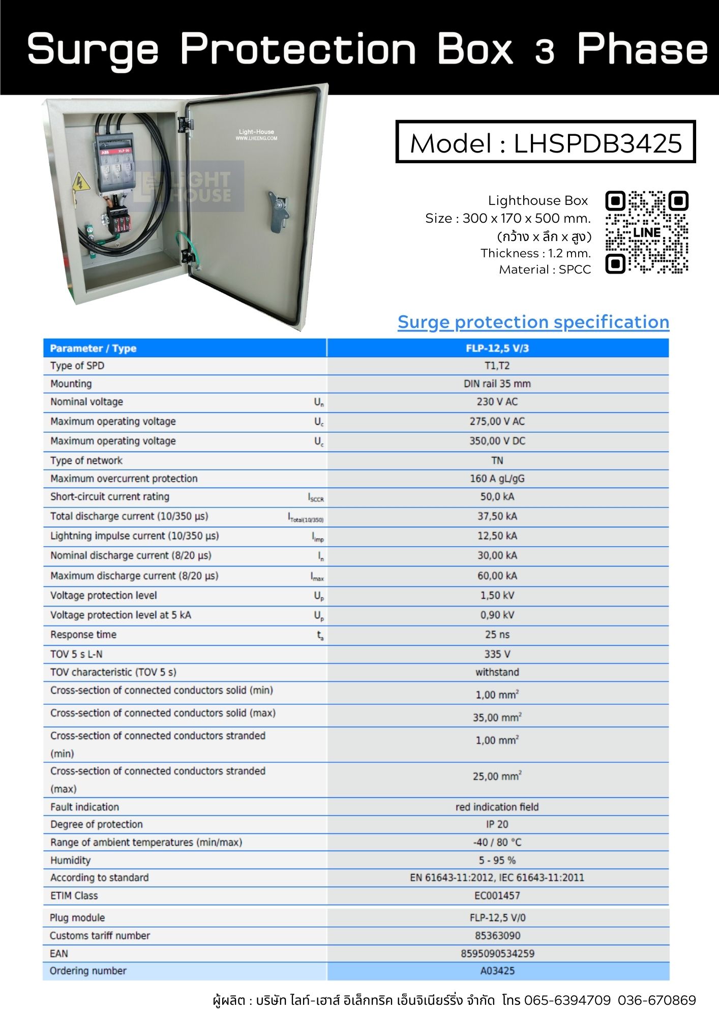 Surge protection Box 3 Phase ตู้ป้องกันไฟกระชากแรงดันสูงชั่วขณะ ในระบบไฟฟ้า 3 เฟส Model : LHSPDBS3425 Surge protection Box