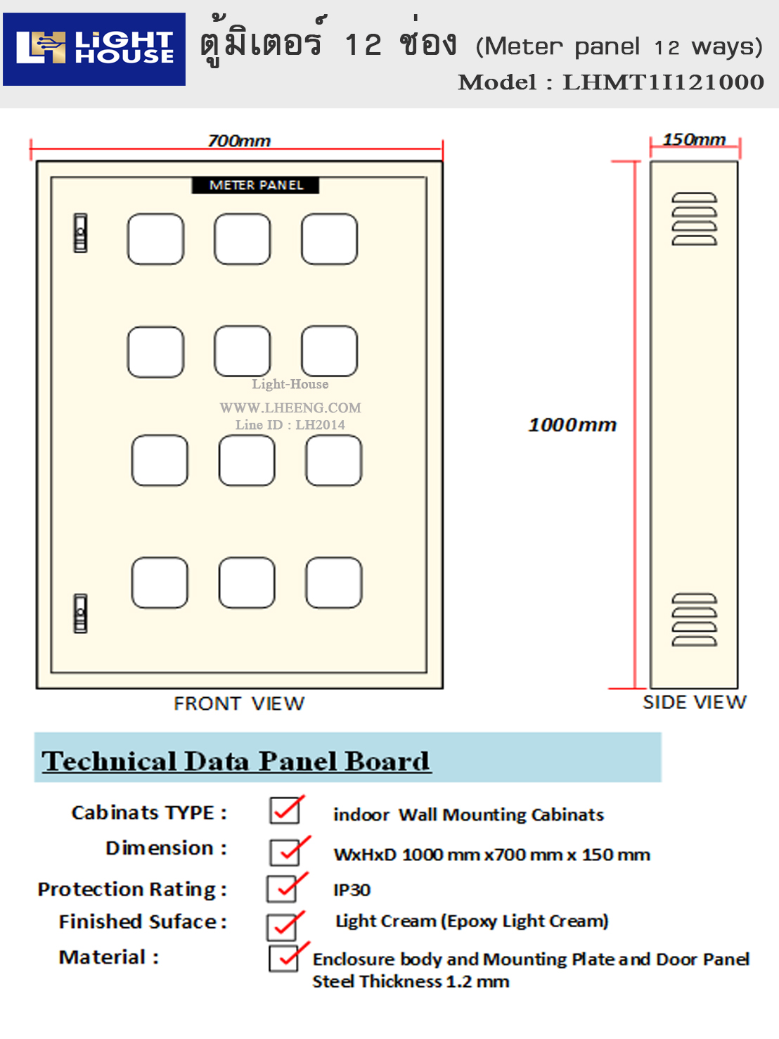 ตู้มิเตอร์ 12 ช่อง (Meter Panel 12 ways) - Model : LHMT1I121000