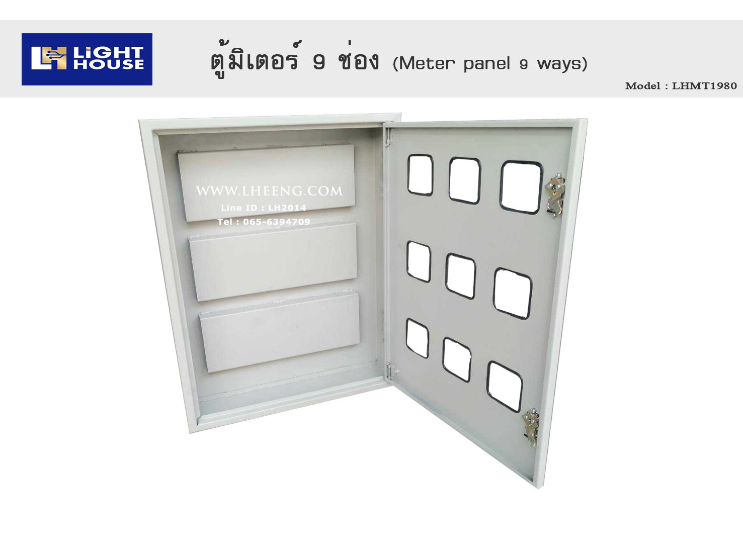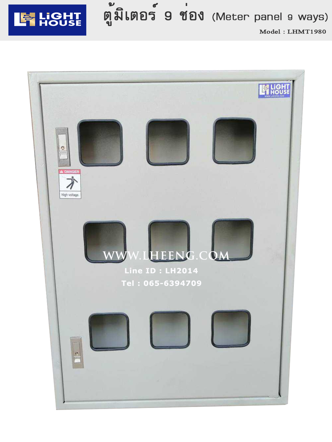 ตู้เหล็กใส่มิเตอร์ไฟฟ้า 9 ช่อง Light-House ตู้มิเตอร์ สำหรับหอพัก อพาร์ทเม้น อาคารที่พัก สำนักงาน