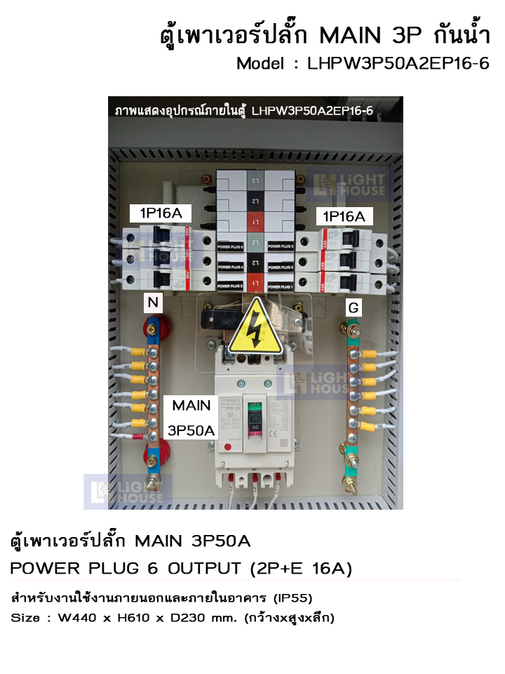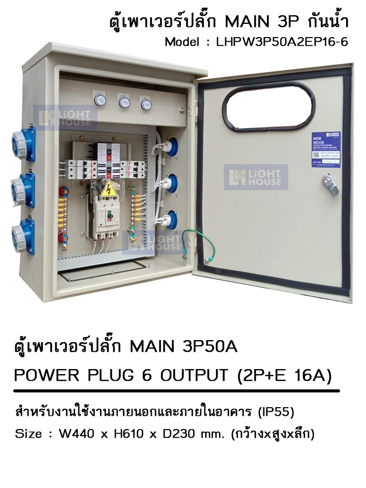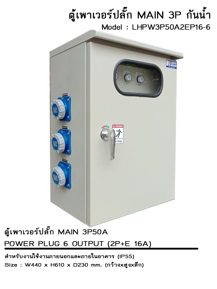 Model : LHPW3P50A2EP16-6 ตู้ไฟสนาม, ตู้ปลั๊กชั่วคราว, ตู้เพาเวอร์ปลั๊ก IP55 MAIN BREAKER : 3P 50A (DAKO)