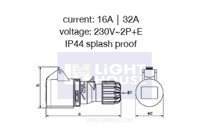 HTN-213 "DAKO PLUG" เต้ารับกลางทาง (2P+E) 16A 230V IP44