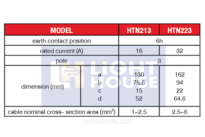 รุ่น HT ประกอบไปด้วย ปลั๊กตัวผู้, ปลั๊กตัวเมียลอย, ปลั๊กตัวเมียกลางทาง,